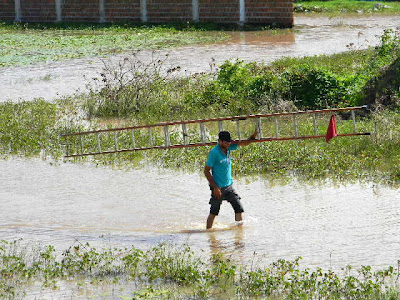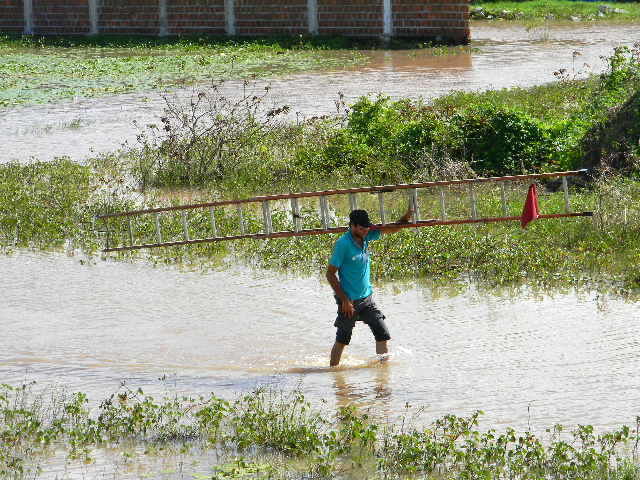 fotografias aéreas da área ainda parcialmente alagada para prevenir os poderes públicos de tomar uma iniciativa quando ainda havia tempo.